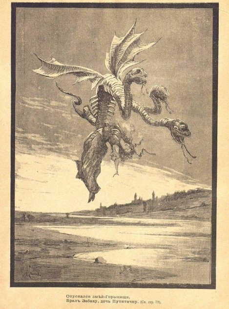 Змей Горыныч похищает Забаву Путятичну, иллюстрация 1894 г.