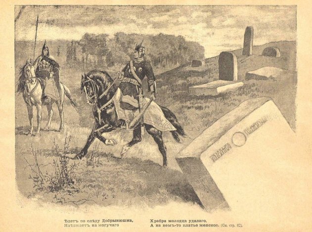 Добрыня Никитич встречает свою будущую жену – Настасью Никуличну, иллюстрация 1894 г.