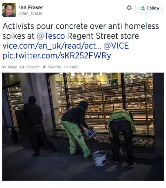 “Активисты бетонируют противобездомные шипы”