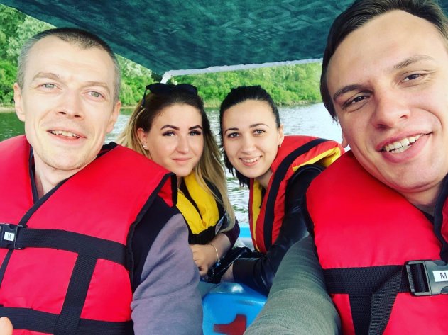 Уже на следующий день она, в компании мужа и друзей, рассекала по волнам на Оболонской набережной столицы.