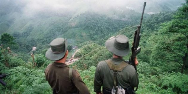 Двое повстанцев ФАРК следят за дорогой В 80-е годы американская политика в Колумбии исходила из двух постулатов. Во-первых, Колумбия считалась самой стабильной демократией в Латинской Америке. Во-вторых, страна рассматривалась как зона бедствия, где повстанцы и наркоторговцы создали новую угрозу — «наркопартизан». Партизаны действительно стали «взимать налоги» с наркоторговцев, а также охранять их.