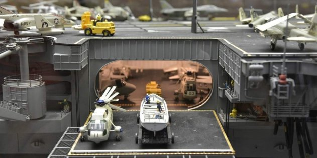 И очень небольшая часть его коллекции моделей На сегодняшний день коллекция Томпкинса насчитывает свыше трёх сотен моделей в масштабе 1:600. Это корабли, подводные лодки и дирижабли ВМС США от времён Гражданской войны до наших дней, а ещё поезда, самолёты и даже космические корабли — как реальные, так и фантастические.