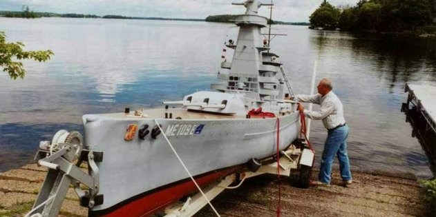 Уильям Терра за штурвалом своего детища В 2017 году модель была выставлена на продажу за 19 тысяч долларов, но, судя по всему, желающих купить её не нашлось. Дальнейшая судьба игрушечного линкора, увы, неизвестна.