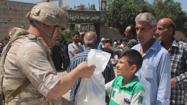 16 июня сюда прибыли с очередной гуманитарной миссией представители российского Центра примирения и военной полиции, рассказал также местный источник в Facebook. Наиболее нуждающейся категории было роздано 500 продуктовых наборов, состоящих из риса, муки, мясных консервов, сахара и чая.