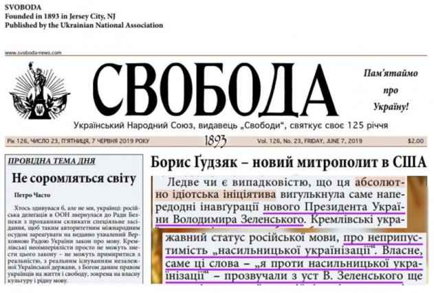 Ксенофобские статьи из номера в номер печатает и газета украинских националистов США «Свобода», пользуясь американским трактованием «свободы выражения мнений».