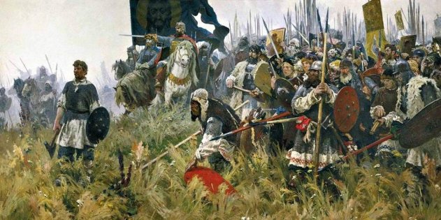 Такие огромные цифры до сих пор приводятся в школьных учебниках. Цифра невероятная. Луноликий Мамай не был ханом и контролировал только западную часть Орды. В Степи не первый год шла «великая замятня» с междоусобной войной — и ресурсы были серьёзно подорваны. Сейчас исследователи впадают в другую крайность, уменьшая войско Мамая менее, чем до десяти тысяч воинов.