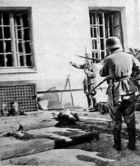 В подземелье спрятались и сотни пассажиров поездов, которых война застала в самый неподходящий момент, с семьями и чемоданами. Подразделения вермахта атаковали защитников вокзала весь день и всю ночь. Подползая к окнам подвалов, немцы кидали внутрь гранаты и дымовые шашки — были ранены многие женщины и дети, люди дышали через тряпки, смочив их в баке для отопления, отовсюду слышались стоны и плач. 23 июня через громкоговоритель нацисты предложили сдаться. Наружу вышли все гражданские с белым флагом, однако горстка военных и железнодорожников (около 70 человек) поклялись продолжить сопротивление.