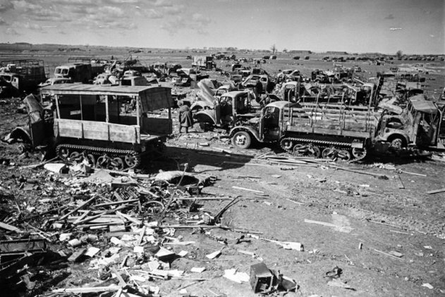 Впрочем, расчеты нацистов и их сателлитов на легкую прогулку по бескрайним российским просторам не оправдались. Пулеметчик Михаэль Загер вспоминал: «22 июня мы в боях не участвовали… У меня есть фото, сделанное в этот день. Далеко впереди мы видели большой взрыв. Говорили, что там взорвался русский склад боеприпасов. Запомнился первый сильный русский артиллерийский обстрел. Он пришелся по месту, где мы еще полчаса назад спали в сене. Деревня, из которой мы только что вышли, была практически уничтожена. Это очень сильно на меня подействовало».