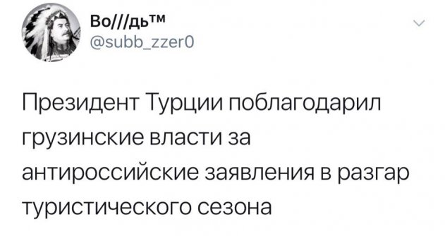 Если очередной грузинский президент прямо называет Россию «врагом и агрессором», что ж, с этой страной себя нужно вести именно как враг и агрессор. Остановить торговлю, заморозить туризм. Никаких рабочих виз для грузинских граждан, никакого грузинского импорта. Грузия, как и вся бывшая советская периферия должна наконец научиться жить за свой счет. Дружба с Россией — это бонус. Это — деньги, которые нужно еще заработать. Полной и безоговорочной лояльностью. Если ее нет — до свидания!