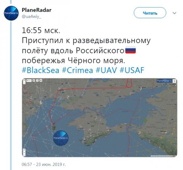 Два американских летательных аппарата провели разведку у берегов Крыма и над Донбассом. Об этом свидетельствуют данные мониторингового ресурса PlaneRadar.