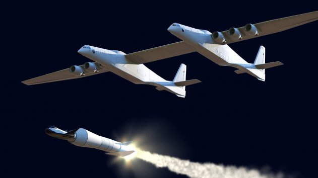 Первый полет построенного компанией самолета-космодрома состоялся в апреле этого года. Это самый большой самолет в мире, имеющий размах крыла 117 метров и вес почти 227 тонн. Предполагалось, что самолет-носитель сможет поднимать в воздух до трех ракет Pegasus XL (производитель Northrop Grumman). От планов по созданию ракетного двигателя нового типа и своего семейства ракет-носителей компания отказалась несколькими месяцами ранее.