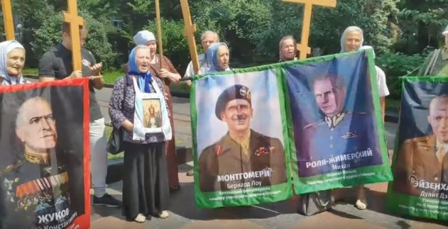 Помимо Сталина и Жукова, участники молебна вынесли портреты таких военачальников как маршал Константин Рокоссовский и Фёдор Толбухин, а также командиров войск союзников. Источник