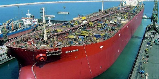 Справка. Самым большим танкером в истории считается Knock Nevis, построенный в 1979 году (ранее известный как Seawise Giant, Happy Giant, Jahre Viking, он же Гоша, он же Жора, он же Гога). Его дедвейт составлял 564 000 тонн нефти — это более четырёх миллионов баррелей. Длина этого монстра — 458 метров, что на 120 метров больше американского авианосца USS «Энтерпрайз». Тормозной путь гиганта составлял 10,2 километра, а диаметр циркуляции — 3 700 метров. Такое судно было создано как самый дешёвый способ доставки нефти с Ближнего Востока в обход Африки. И действительно получалось дёшево — стоимость доставки за галлон (3,8 литра) всего два-три цента.