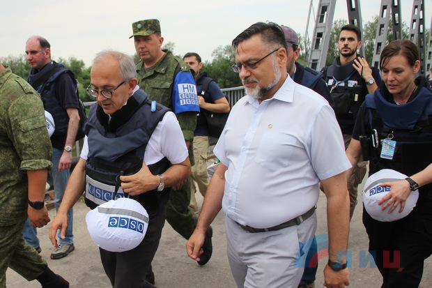 Возглавивший в конце мая Специальную мониторинговую миссию (СММ) ОБСЕ на Украине Яшар Халит Чевик впервые прибыл в Луганскую Народную Республику с рабочим визитом. Чевик, пересекая линию соприкосновения, ознакомился с состоянием разрушенного пролета моста через реку Северский Донец, а также осмотрел действующие в этом районе пункты пропуска Украины и ЛНР.