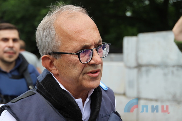 "Это визит - чисто рабочий технического характера для знакомства с обстановкой на месте, для знакомства с наблюдателями (из луганской команды СММ). Это его первый визит, я надеюсь, что его визиты будут более частыми, чем практиковал Апакан, и работа миссии будет организована более эффективно в целях обеспечения максимально объективного мониторинга ситуации в ЛНР и особенно на линии разграничения", - добавил он.