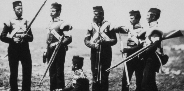 Британские солдаты в Крыму с мушкетами Энфилда, 1855 год