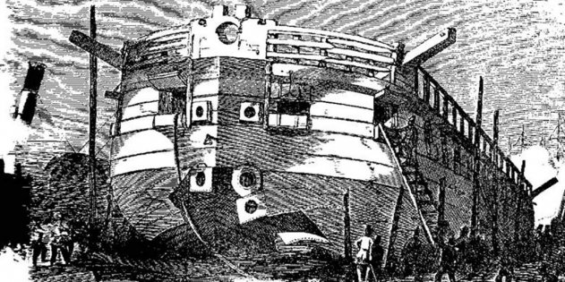 Английская плавучая батарея «Этна» на стапеле