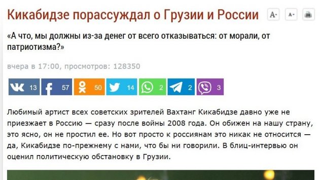В неполживой интернет-прессе — утренний хит-парад русофобов. Ну как же обойтись россиянам, с раннего утра, без пенделя от Кикабидзе и кампании?! Решительно невозможно!