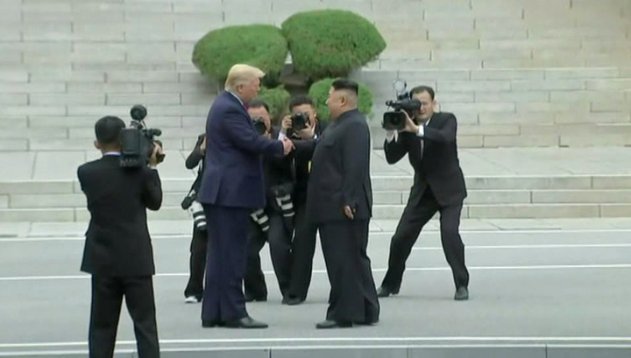 Затем президент США по приглашению Ким Чен Ына прошел на территорию Северной Кореи. Трамп назвал это "большой честью" и перешел границу, перешагнув через символический бетонный барьер высотой в несколько сантиметров, таким образом став первым действующим президентом США, ступившим на северокорейскую территорию.