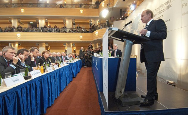 Расхождение во взглядах постепенно становилось непреодолимым. К 2007 году Путин выразил свое недовольство на Мюнхенской конференции по безопасности, ежегодной ассамблее глобальных элит, но неизвестно, почувствовал ли кто-нибудь всю глубину его недовольства. «(…) чуть ли не вся система права одного государства, прежде всего, конечно, Соединенных Штатов, перешагнула свои национальные границы во всех сферах: и в экономике, и в политике, и в гуманитарной сфере — и навязывается другим государствам. — сказал он. — Ну кому это понравится? Кому это понравится?» Он продолжил: «Никто не чувствует себя в безопасности! Потому что никто не может спрятаться за международным правом как за каменной стеной».