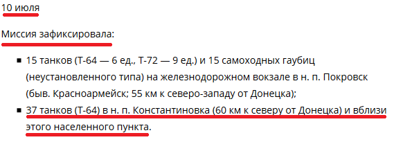 Кроме того, в этом же отчете наблюдателями Миссии было зафиксировано нахождение большого количества танков в н.п. Константиновка и непосредственной близости от него: