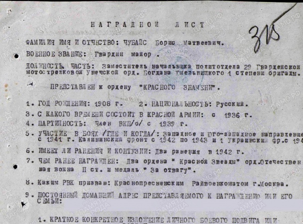 Cвоей исторической ложью Чубайс оскорбил прежде всего память своего отца — участника Великой Отечественной войны полковника Бориса Матвеевича Чубайса, который дошёл до Берлина, будучи замначальника политотдела 29-й гвардейской мотострелковой бригады. Чубайс-старший награждён медалью «За отвагу», двумя орденами Красной звезды, орденом Отечественной войны II степени и орденом Красного знамени. Сам Игорь Чубайс, поносящий сегодня память о народе-победители, родился 26 апреля 1947 года в Берлине, где родители после войны жили некоторое время, пока дивизию не перевели под Минск.