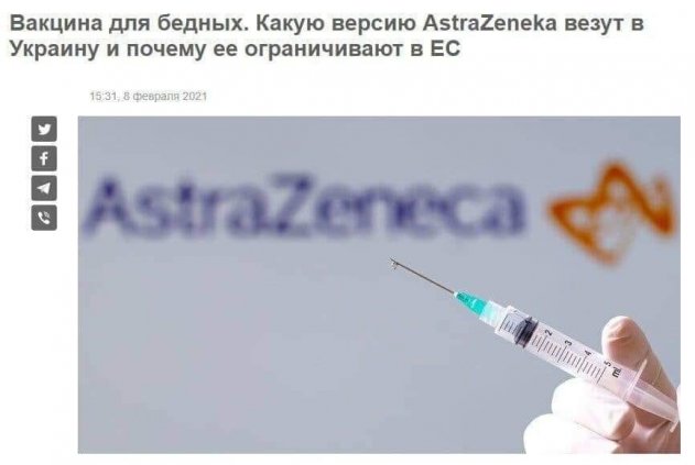Как вы знаете, врачеи не обманешь. Они знают, что такое вакцина АстраЗенека, и какие побочные эффекты от нее. Чаще всего с летальным исходом, и это многократно подтверждалось на территории Европы и США. Даже украинские СМИ написали, что эта вакцина для бедных.