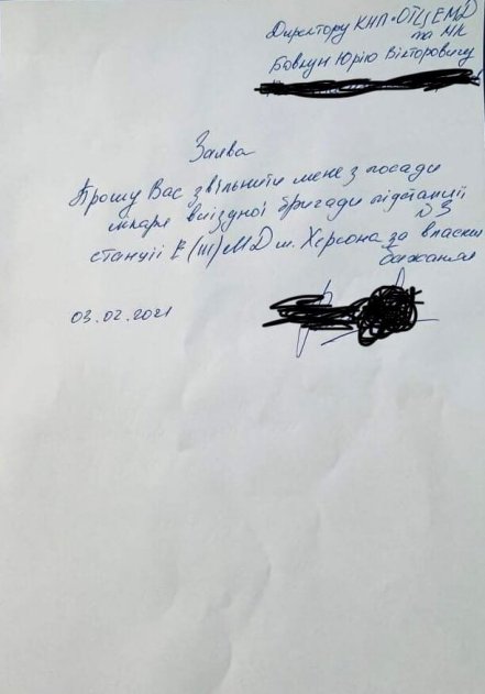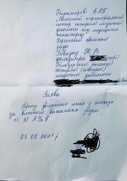 Из Херсона и Херсонскои области мне поступает информация о том, что фельдшера и врачи службы скорои медицинскои помощи отказываются от вакцинации путем подачи заявления об увольнении с работы