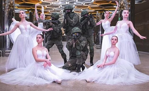 Однако вместо того, чтобы обратиться к женщинам-военнослужащим — а их в российской армии 45 000 — позировать вместе с солдатами в полной боевой выкладке позвали профессиональных балерин в пачках.