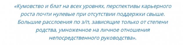 Зато есть кумовство и беспредел отдела кадров, для которого имеет значение только твоя лояльность к тому или иному руководителю и умение держать свое мнение при себе.
