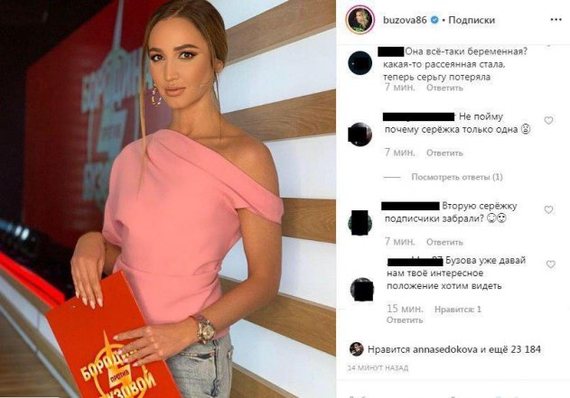 «Все-таки беременная? Такая рассеянная стала, теперь серьгу потеряла», - пишут в Сети. В общем, неожиданная рассеянность Бузовой не на шутку обеспокоила ее фанатов. Кроме того, поводом для сплетников с новой силой заговорить о возможной беременности Ольги, стало новое фото звезды – такое ощущение, будто телеведущая специально прикрывает себе живот.