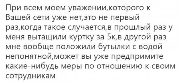 Шаловливые ручки Почты России дотянулись не только до конфет. Клиентка жалуется, что ранее у неё из посылки украли куртку, которая стоила намного дороже конфет – порядка пяти тысяч рублей.