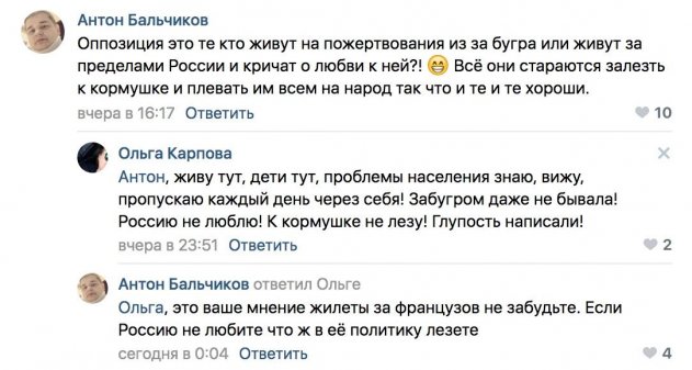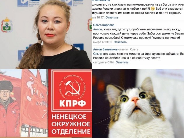 Ненецкий депутат от КПРФ заявила о нелюбви к России на просторах социальных сетей. Она прокомментировала запись одного из пользователей соцсети о том, что такое оппозиция и кто её кормит. По мнению пользователя - это те, кто кричит о любви к России «из-за бугра» но при этом поливает её грязью за счёт каких-то заокеанских средств. Депутат Ольга Карпова не согласилась с утверждением, и решила поделиться сокровенным:
