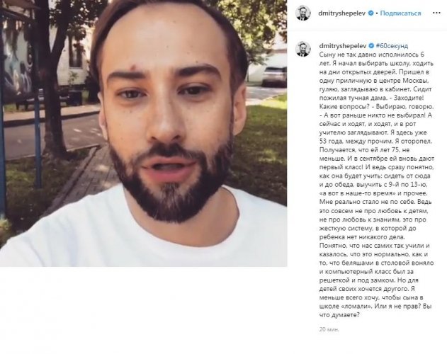 36-летний ведущий программы «На самом деле» Дмитрий Шепелев поделился со своими подписчиками в социальной сети Instagram о животрепещущей теме. Знаменитый мужчина в этом году отдает в первый класс своего единственного сына Платона, которому ему родила покойная певица Жанна Фриске. Стоит отметить, что как любящий и ответственный отец Дмитрий стал ходить по разным школам, чтобы выбрать для наследника самое лучшее учебное заведение. Однако тут Шепелева ждала неприятная ситуация, о которой он рассказал в Сети.