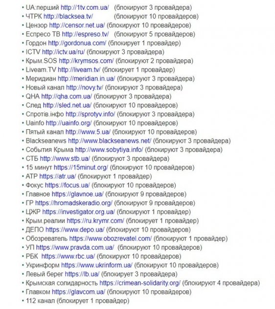 Десять провайдеров в оккупированном Россией Крыму полностью блокируют 12 украинских информационных сайтов и 2 социальные сети. Кроме этого, 28 сайтов заблокированы частично. Об этом свидетельствуют результаты мониторинга Крымской правозащитной группы (КПГ), который был проведен в феврале-марте 2019 года.