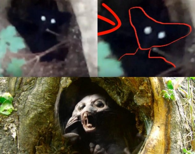 Необычное явление заснял житель Красноярского края во время турпохода по местным лесам. Снимая красоты местной природы на камеру, он вышел к дереву с дуплом и увидел нечто поразившее его. Из дупла на него смотрело загадочное существо с необычной кожей и большими глазами, меняющими свой цвет.
