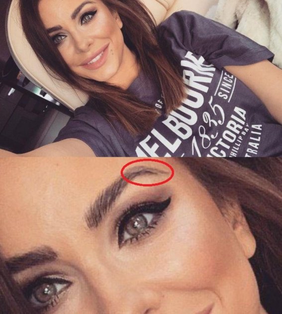 Если внимательно присмотреться в селфи, то становится заметно, что у артистки потекла бровь. Ее угол вылез значительно дальше самого роста волос, и это становится заметно только при увеличении. Подписчики также заметили, что с бровью кумира что-то не так.