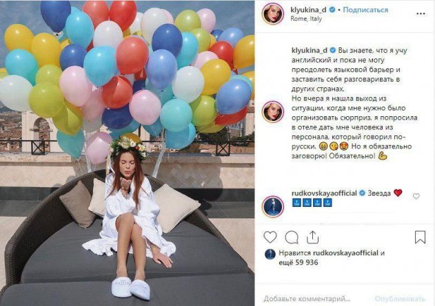 На такие подозрения натолкнули комментарии Рудковской к новой публикации Клюкиной в Instagram.