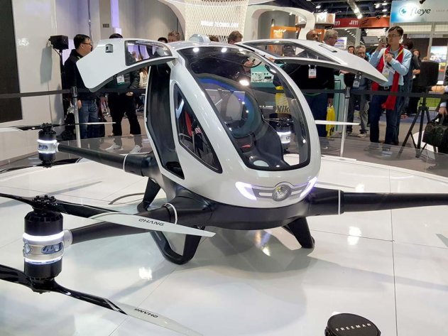 EHang 216 это дрон на автопилоте, с весом 340 килограмм, и максимальной скоростью в 150 км/ч. К сожалению, кабина рассчитана только на 2 пассажира, но это ненадолго, поскольку компания будет модифицировать аппарат до вместительности в 4 пассажира.