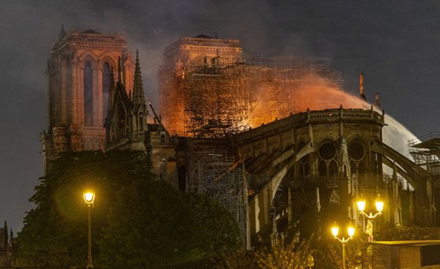 Пожар в соборе Парижской Богоматери. Пожарные контролирую пламя, причина до сих пор неизвестна