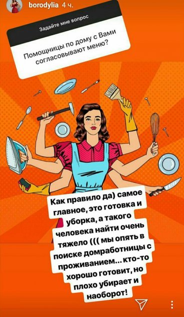 Недавно популярная российская телеведущая Ксения Бородина, отвечая на вопросы подписчиков в социальной сети Instagram, проговорилась, что снова находится в поиске домработницы. По словам знаменитости, женщина, которая претендует на эту должность, должна одновременно хорошо уметь готовить и убирать в доме. Видимо, предыдущая домработница с этим не справлялась, ведь «капризная» Ксения заявила, что пока никто не смог сделать эти две вещи идеально.