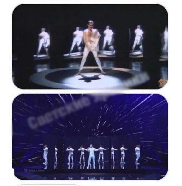 Видимо, номер Лазарева на «Евровидении» был позаимствован у группы «Queen». Пару десятилетий назад молодой Фредди Меркьюри выступал с аналогичной концепцией. Даже белый наряд практически не отличается от образа российского конкурсанта. Так сказать, не украл, а вдохновился. Возможно, Киркорова как раз рассчитывал, что легендарный певец и его задумка поможет одержать желанную победу.