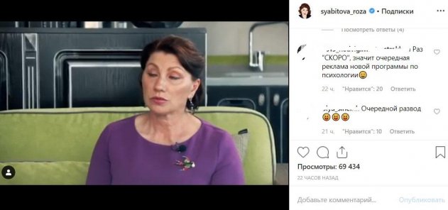 Вероятно, новое шоу как раз таки направлено на то, чтобы помогать людям, которые столкнулись с психологическими проблемами. Чтобы привлечь публику, Сябитова, видимо, пошла на хитрый ход. Усталость, раздвоение личности, рассеянность, удушье – все это ведущая «Давай поженимся!» могла выдумать для убедительности. Если бы Розе на самом деле было так плохо, как кона описывает, она бы не стала изливать душу в соцсетях, а тем более на камеру.