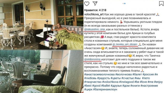 Анастасия Волочкова всегда старается привлечь к своей персоне максимум внимания как за счёт творческой деятельности, так и за счёт эпатажных выходок на грани фола. Недавно жизнью балерины заинтересовались финансовые эксперты, когда стало известно, что Волочкова, вероятно, может в любой момент потерять особняк из-за надвигающегося банкротства. Поводом для подобных подозрений стал анализ недавних публикаций балерины в соцсетях, ведь даже невооружённым глазом заметно, что количество рекламы в постах танцовщицы достигло поистине колоссальных размеров. Балерина и раньше бралась за продвижение различных товаров сомнительного качества лишь для того, чтобы хоть как-то поддерживать семейный бюджет. Сейчас же танцовщица, очевидно, находится в полной панике, если ей приходится создавать отдельные публикации для соцсетей, чтобы продвигать товары сразу нескольких производителей в одночасье. Чтобы получить «копеечку» от благодарных спонсоров, Анастасия Волочкова сделала серию фотографий, специально засняв спонсорские пледы, кованую мебель и подушки, не забыв упомянуть о каждом рекламном элементе.