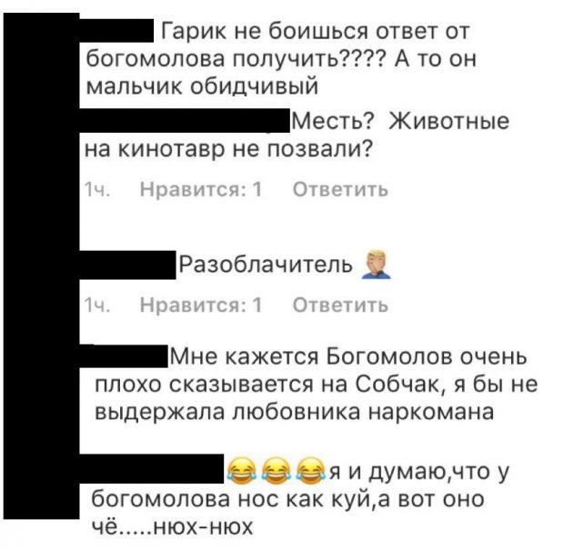 Кто знает, может, Харламов не понаслышке знает об увлечениях кинозвёзд, ведь про алкоголь он не врал и у него множество друзей и знакомых среди участников «Кинотавра». Многие фанаты насторожились за здоровье Собчак, ведь после начала близкого общения с Богомоловым, её замечали с сигаретами, частым употреблением алкоголя.