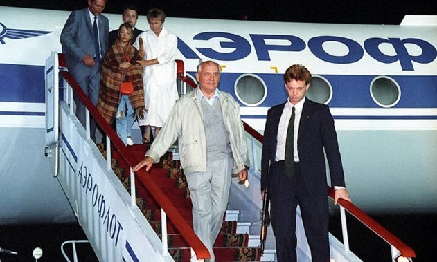 Это произошло 21 августа, на третий день «путча», который уже сдулся. Борт с «героически освобождённым» президентом СССР приземлился во Внуково-2 в ночь на 22-е. С трапа самолёта спустился Горбачёв, как кто-то написал, с «перевёрнутым» лицом. Он вернулся, по его словам, «в совсем другую страну». Но так ведь и было задумано.