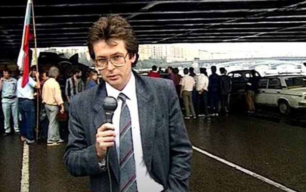 Телерепортёр Сергей Медведев. Кадр из самого знаменитого его репортажа 19 августа 1991 года