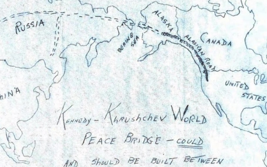Кирилл Дмитриев, профильный спецпредставитель президента и важный участник переговоров, написал про «туннель Путина–Трампа», а также передал американцам исторический рисунок Дага Сандстрема (ссылка). Кто такой мистер Сандстрем, я не знаю: вероятно, обычный гражданин США. Он написал Никите Хрущёву письмо с предложением соединить Чукотку с Аляской. Скан его плана я приложил к посту.