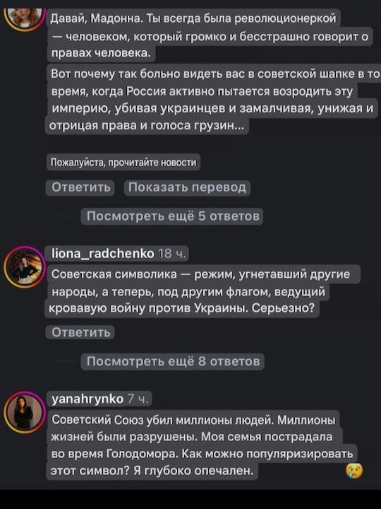 Королева поп-музыки снова в центре скандала, и на этот раз поводом стала не откровенная фотосессия или молодой бойфренд, а головной убор. Мадонна опубликовала в Instagram (запрещён в РФ) снимки в шапке-ушанке с советской кокардой — красной звездой с серпом и молотом.