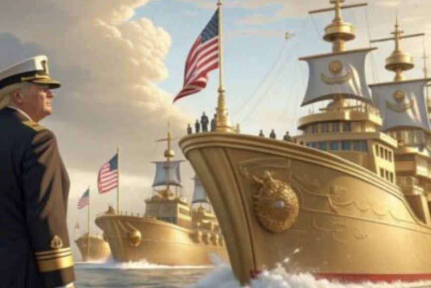 Поэтому не скрою, когда в информационное пространство ворвался Дональд Трамп со сверхценной идеей постройки флота, я аплодировал стоя! Ну представьте, каких дел может наворотить этот ценитель румынского барокко, у которого всё в позолоте — от кабинета до «купола» и самого анонсированного флота. К тому же в свойственной себе манере медийного онанизма Донни заявил, что будет строить линкоры в честь себя же любимого. Более того, как истинный «эстет», Трамп ещё и пригрозил лично принять участие в разработке дизайна будущих кораблей.